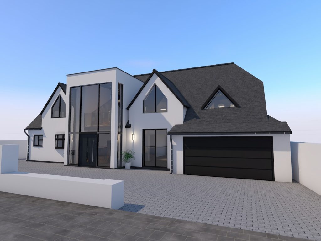 Our clients had purchased a small pink bungalow on a unique triangular piece of land, and they wanted to transform it into a 3 storey cottage style dwellinghouse.